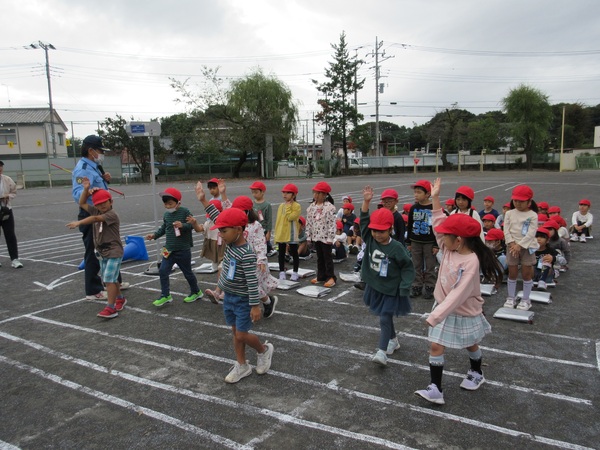 交通安全教室の様子です。交通教育指導員の方に御来校いただき、歩き方や自転車の乗り方について学びました。
