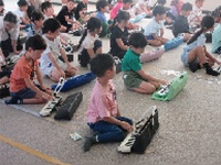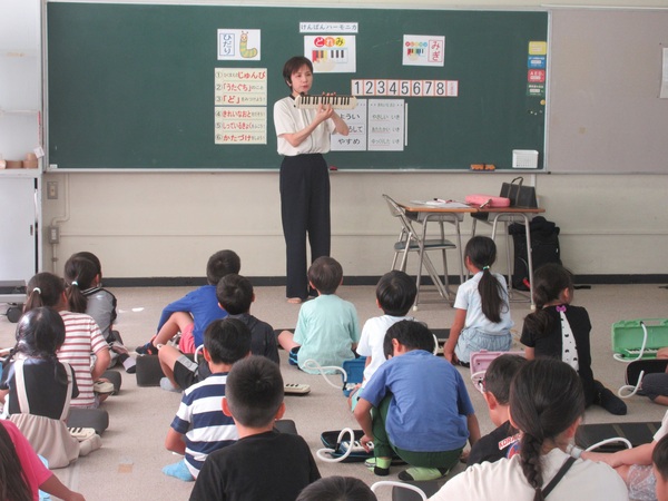 講師の方にお越しいただき、鍵盤ハーモニカの演奏方法を教わったときの様子です。