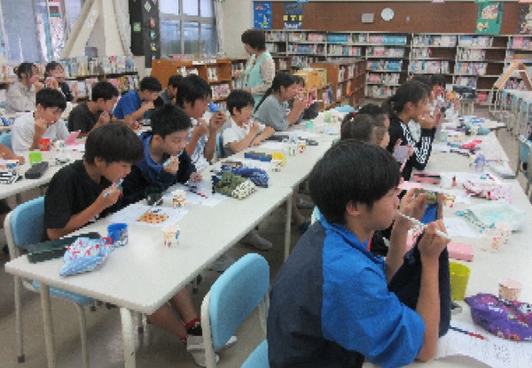 さいたま市教育委員会 歯科衛生士の方にお越しいただき、歯磨きの仕方について教えていただいた時の様子です。